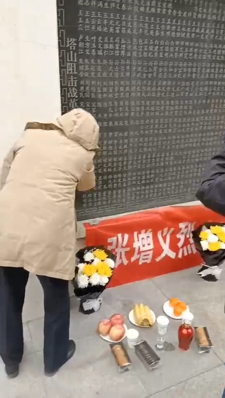 不久前,这条短视频终于被张增义烈士的后人看到。他们激动不已,立即与杨宁取得了联系。经过核实确认,张增义烈士的家人终于得知了烈士的安息之地。4月16日,张增义烈士的81岁女儿张顺英女士怀着无比激动的心情,来到了辽宁塔山烈士陵园,祭拜她多年未见的父亲。在烈士墓前,张顺英全家人都泪如雨下,她诉说着对父亲的思念之情。