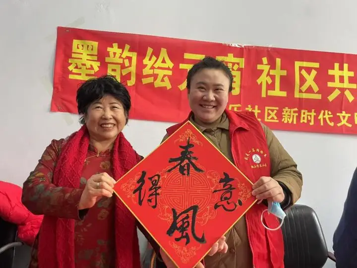 活动现场,来自群乐社区的退休书法爱好者挥毫泼墨,书写了“平安和谐”“吉祥如意”“春风得意”等新春祝福送给社区工作者和居民。另一边,社区志愿者向孩子们讲解元宵节的由来及文化习俗。志愿者还向孩子们详细讲解灯笼制作的步骤,孩子们一起动手制作花灯。