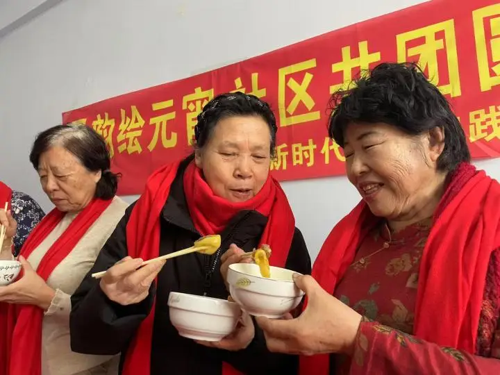 社区工作人员将一碗碗冒着热气,香甜软糯的汤圆送到居民手中,大家一起品尝象征团圆的汤圆,感受浓浓的节日氛围。