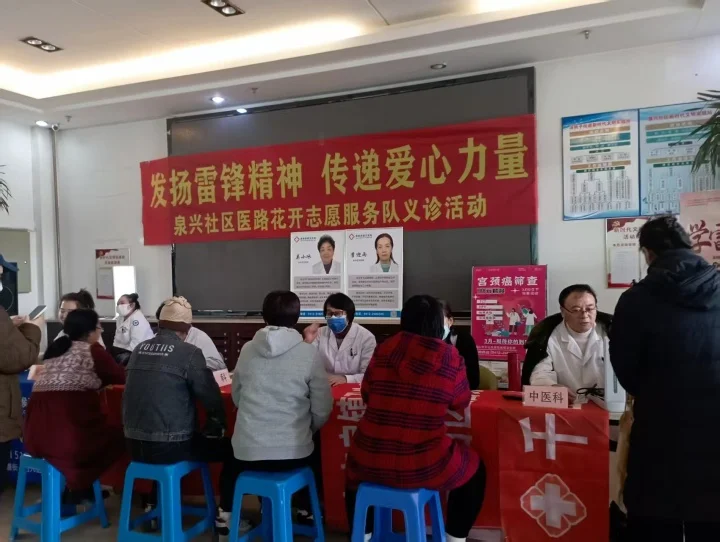 今年3月5日学雷锋纪念日,汤岗子街道新时代文明实践所联合唐家房卫生院,在泉兴社区开展“发扬雷锋精神 传递爱心力量”义诊活动。“医路花开”志愿服务队深入社区,为100余位居民提供专业诊疗服务,并进行健康宣教。实实在在把健康服务送到群众家门口,生动体现了新时代文明实践所服务群众的效能。