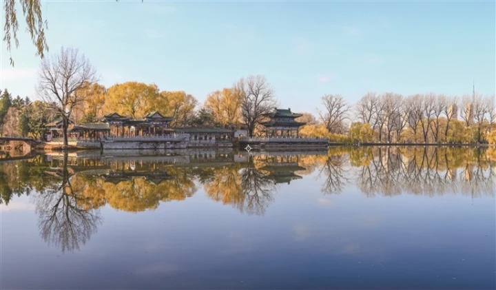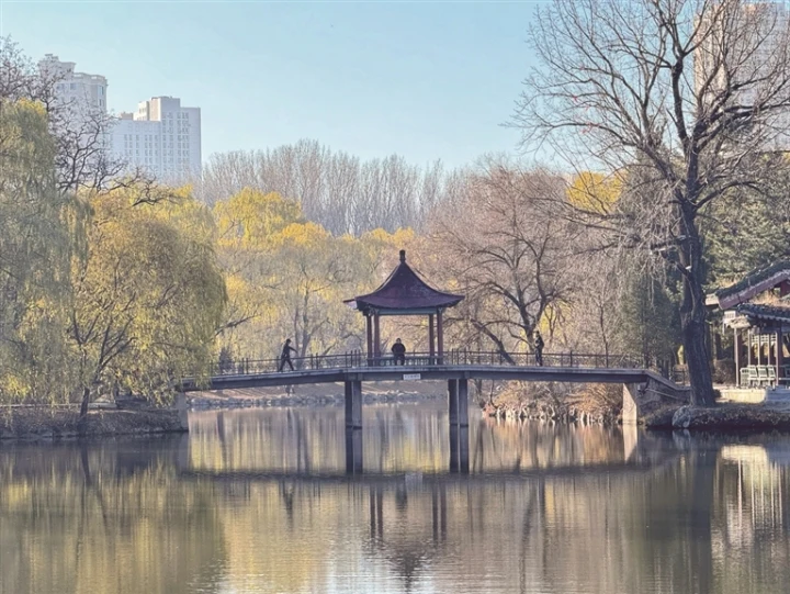 初冬,白天的阳光依旧温暖,蓝天白云下,公园里、小河边,美丽的景致仿若画卷。树木色彩斑斓,湖水静谧深沉,光影斑驳间,处处透着宁静与美好。(来源:鞍山日报)