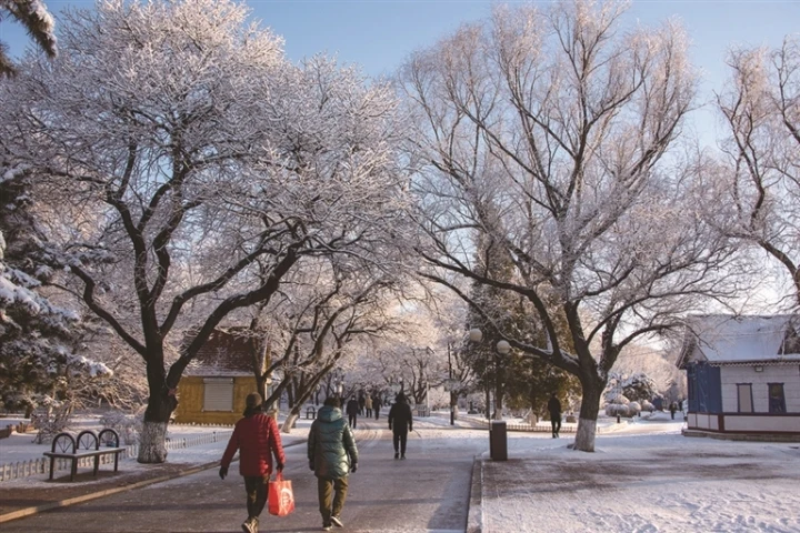 冬雪过后,往日繁茂的树木枝条被大自然妆点出璀璨银装。有的纤细如笔,有的蜿蜒似龙,冰晶在阳光的照耀下折射出梦幻般的光芒。一步一景,皆藏诗意,尽显鞍山冬日的别样风姿。(来源:千山晚报)