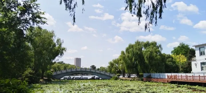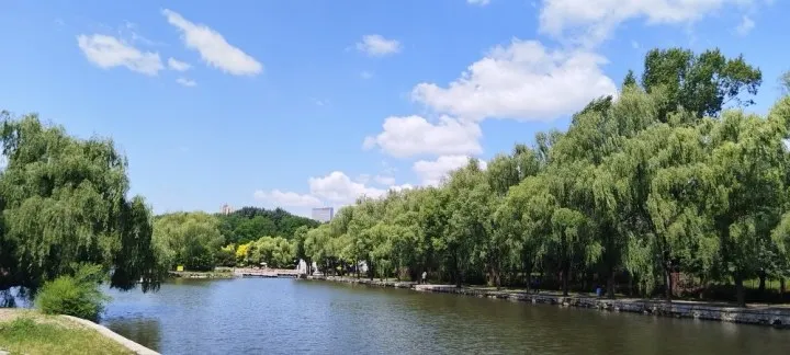6月10日,鞍山蓝天如碧,白云似絮,与各大公园内湖水绿树相互映衬,构成如诗如画的美景。众多市民漫步赏景,感受着大自然的魅力。