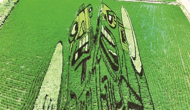 稻田作画又称稻田彩绘,在栽种时就要花上一番心思,稻田作画看似豪放,其实是个精细活。景区稻田画主要“颜料”采用的是红、黄、绿、黑四种颜色的水稻。登上观景台俯瞰,生动而精美的稻田画跃入眼帘,点缀着绿海稻田,如织锦般铺展在脚下,壮观而唯美。