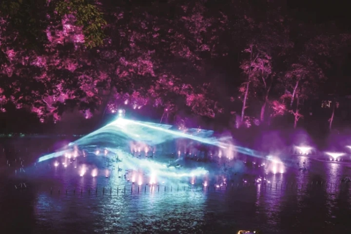 夜幕降临,千山景区“好运莲莲 鞍山奇妙夜”拉开帷幕。云潭边,七彩喷泉随着音乐肆意舞动,水柱或激昂直上,或轻柔摇曳,在灯光的映照下,呈现出如梦似幻的色彩。一旁,水幕电影精彩亮相,光影与水雾交融,令人沉浸其中。这里已然成为鞍山一处全新网红打卡点,吸引了众多游人前来感受令人震撼的视觉盛宴。(来源:千山晚报)