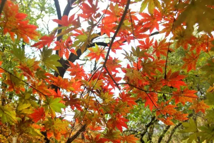 10月20日,千山风景区枫叶迎来最佳观赏期。火红的枫叶渲染着深秋的千山,与翠绿松柏交织成斑斓画卷。(来源:鞍山日报)