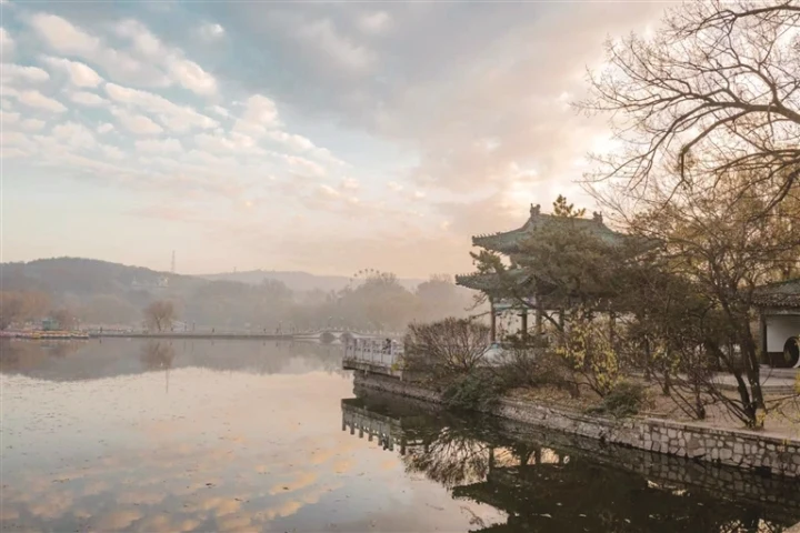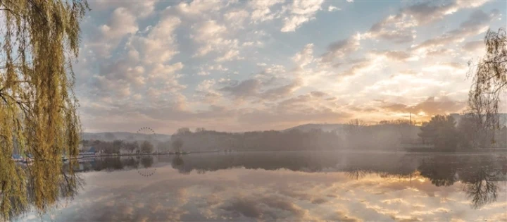 当第一缕晨光刺破天际时,鞍山这座因钢铁而生的城市,褪去工业的厚重,显露出温柔的模样。金色的光线洒向钢铁厂区的轮廓,映照在二一九公园的湖面,漫过街头巷尾,唤醒市区的烟火气息。整座城市瞬间苏醒了,在最美的清晨露出笑容与活力。(来源:千山晚报)