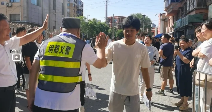 在鞍山三中考点,有一支特殊的“高考服务专业户”,截至2025年高考,钢都义警孙宝江志愿服务队的志愿者用15年的坚守,为三中考点的考生们平安护航。