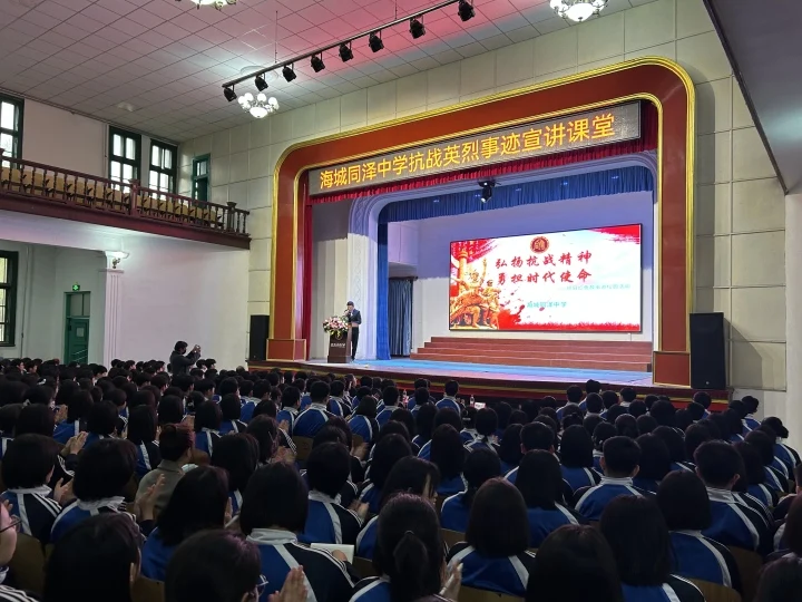 4月17日是抗日英烈马文良牺牲纪念日,一场“弘扬抗战精神 勇担时代使命”主题宣讲课在海城市同泽中学举行。此次活动由市委宣传部、市委党史研究室、市退役军人事务局、团市委联合海城市委宣传部、海城市教育局、海城市退役军人事务局举办 。