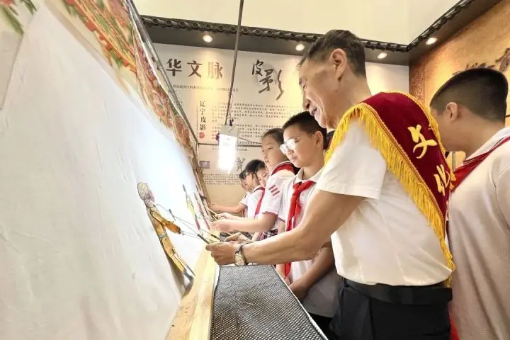 海城皮影戏的沉浸式展演更是将活动推向高潮。传承人不仅讲解了皮影戏的历史渊源、制作工艺与表演技巧,还现场展示了精湛的操控技艺。当孙悟空在幕布上腾挪翻跃时,台下爆发出阵阵惊叹。孩子们受邀来到幕后,在传承人的指导下亲手操控皮影表演。