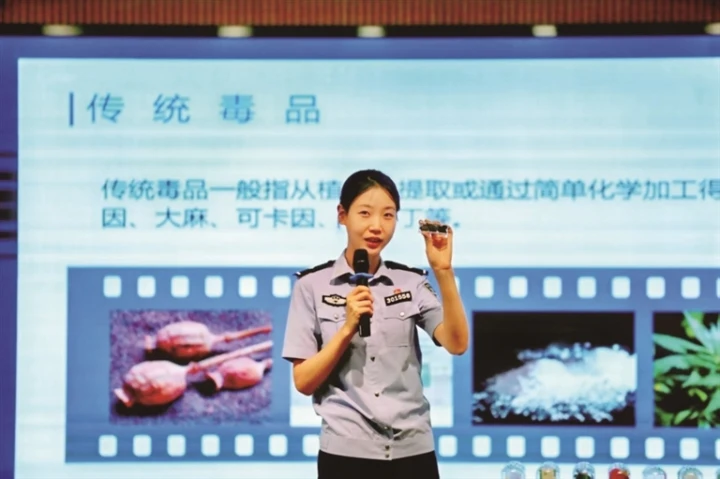 日前,市公安局铁东分局携手铁东区检察院、区司法局来到辖区各学校开展毒品预防教育知识,形成校园普法“零距离”。现场设置了仿真毒品模型互动区,学生们聆听针对传统毒品和新型毒品模型的讲解,直呼“这个太震撼了”。本次活动为青少年营造了健康无毒的成长环境,筑牢了校园禁毒“安全网”。(来源:鞍山日报)