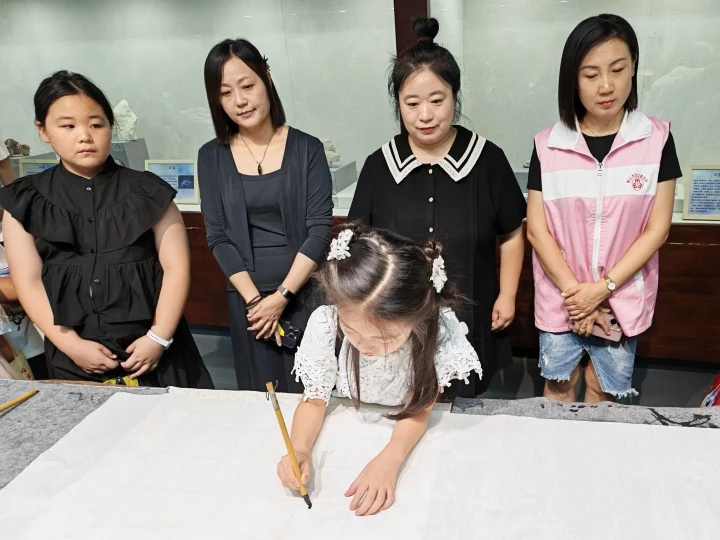 8月11日,立山区妇联“向阳花学堂”联合市退役军人学雷锋志愿服务队,在青籽玉石博物馆开展“国防教育+文化体验”研学活动,让孩子们在实践中成长。(来源:鞍山日报)