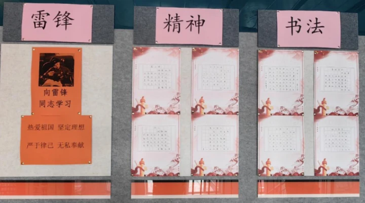 “雷锋精神·红色传承”硬笔书法展巧妙设置“雷锋”“精神”“书法”三大核心板块,集中陈列了众多学生优秀硬笔作品,内容丰富。学生们工整隽秀的字迹,不仅展现了扎实的书法功底,更生动诠释了雷锋精神的时代价值与深厚的爱国情怀。