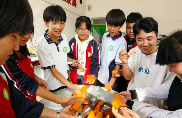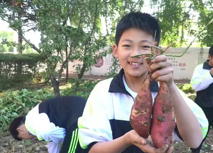 2025年5月,大屯中学在校园一角开辟了劳动实践基地,学生们在老师的带领下种下第一批地瓜苗。“当时它们还耷拉着叶子,现在藤蔓都爬满田垄了。”学生们举着刚挖出的红皮地瓜,语气里满是自豪。