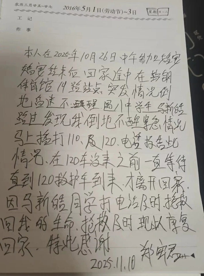“多亏那两个孩子蹲守着及时报警!”几天后,被救者的女婿付先生辗转通过报警记录找到马新皓母亲时,语气里满是劫后余生的庆幸与感激。他说:“到医院后,医生跟我说,再晚送来5分钟,就算是神仙来了也难救!要是没有马新皓和王子睿这两个孩子,我岳父就危险了。他们那么小,却比很多成年人都勇敢、有耐心,我们全家都记着这份恩情,也希望这两个好孩子能被更多人知道,让大家都学学这种‘肯停留、敢伸手’的精神!”