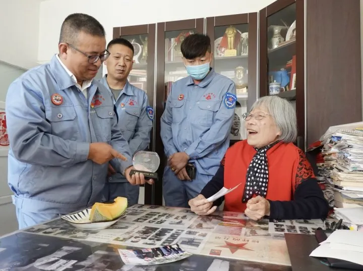 临近重阳节,鞍山雷锋车队的的哥的姐们带着礼物看望雷锋工友易秀珍老人。在聊天中,老人指着一张老照片讲述了一个雷锋的新故事。