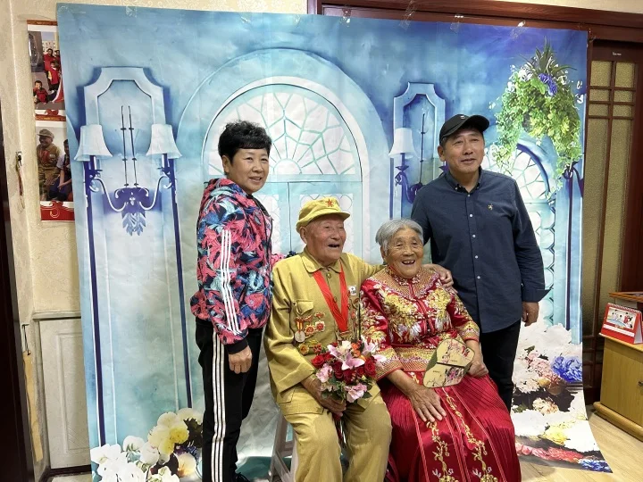 张贵斌曾在解放战争战场上浴血奋战,为国家和人民立下赫赫战功,回到家乡后,他在村委会、农电局等岗位上默默耕耘,不求回报,始终保持着共产党员的忠诚本色。和老伴相濡以沫80载,却没有一张像样的结婚照。袁芬、张建华、王庆亮、杨光四位爱心人士了解到这个小遗憾后,决定为张贵斌“圆梦”。几个人精心筹备,从挑选礼服到准备背景布和手捧花,每一个细节都倾注了满满的关爱。10月11日一大早,几人专门驱车从鞍山来到海城,上门为老英雄夫妇拍摄“结婚照”,并将其作为送给老英雄特别的重阳节礼物。