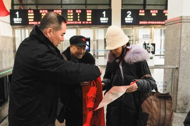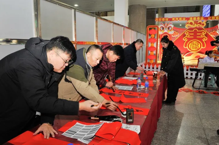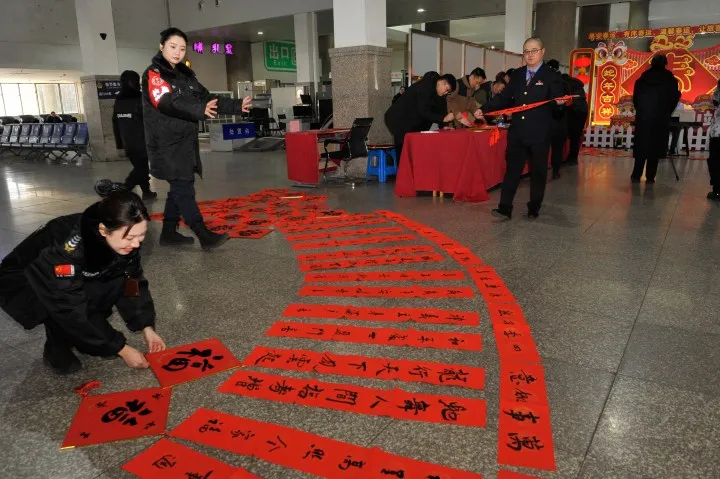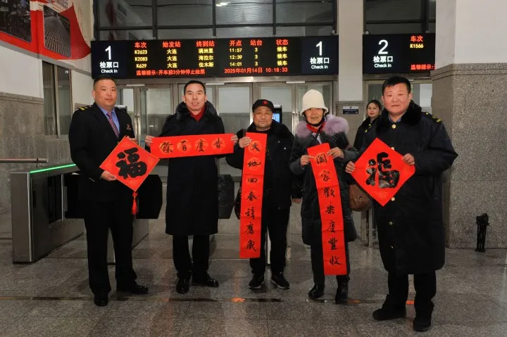 1月14日,2025年春运拉开大幕。鞍山站和鞍山西站里人头攒动,旅客归心似箭。鞍山车务段精心筹备,为旅客营造了温馨欢乐的氛围。在悠扬的古筝曲《渔舟唱晚》声中,书法家在候车室里挥毫泼墨,为旅客书写对联和福字。同时,两站还通过摆放展台、粘贴海报、挂中国结等方式,让候车室充满了浓浓的年味儿,为旅客送上温暖的祝福。(来源:千山晚报)