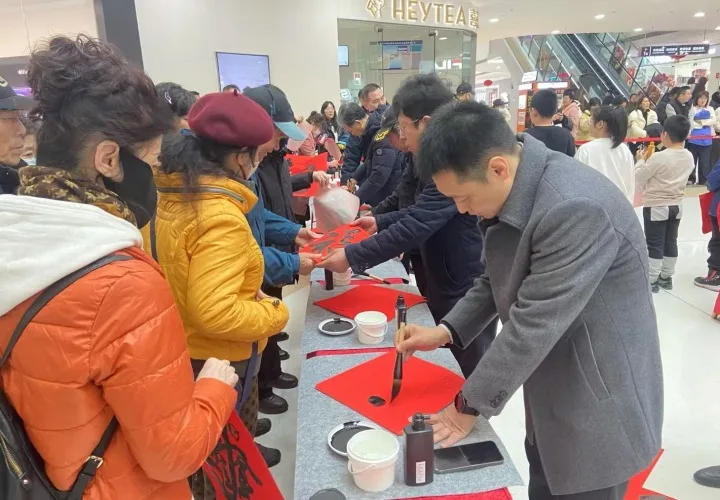 上午10时,伴随着市演艺集团精彩表演的开场舞,活动正式启动。多位非遗传承人登台为大家展非遗、拜大年。舞台的另一侧,书法家和小朋友们现场挥毫泼墨,书写福字送给前来参与活动的市民,传递新春祝福。
