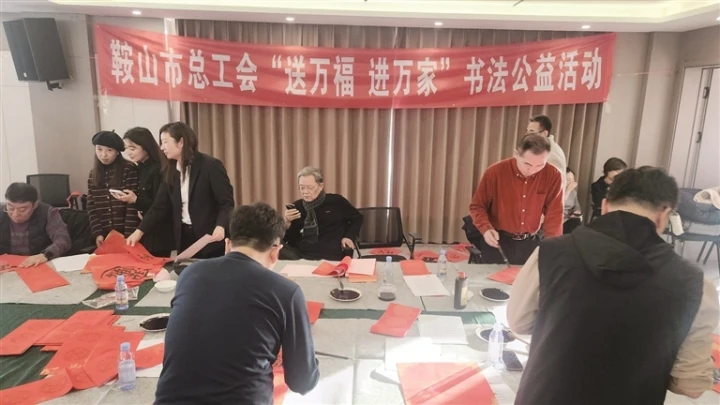 1月22日,鞍山市总工会“送万福、进万家”书法公益活动走进立山街道,为社区工作人员与居民送上新春祝福。活动现场,几位书法家豪情满怀、笔锋游走,一副副春联、“福”字跃然纸上。拿到墨宝的居民喜笑颜开,让大家在墨香中感受到浓浓的年味与温暖。(来源:鞍山日报)