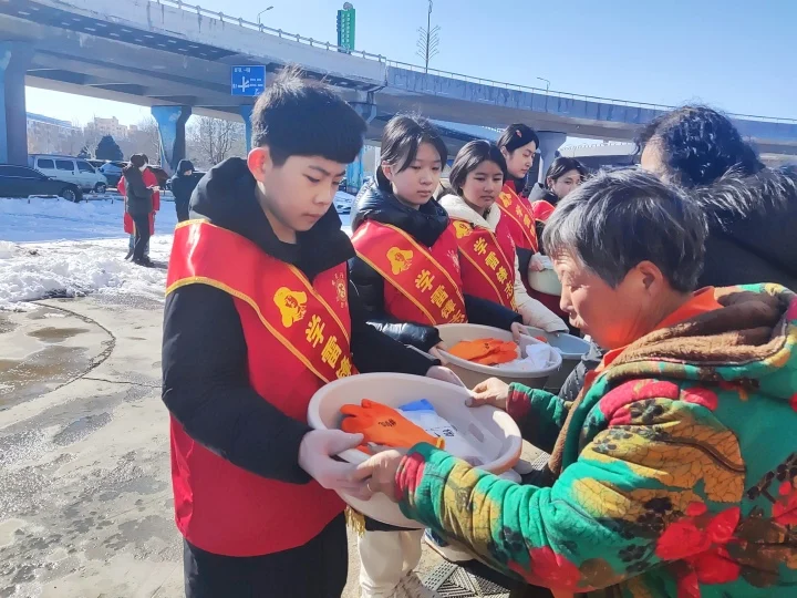 2月12日,元宵节当天,为感谢环卫工人的辛勤付出,郭明义海城爱在行动志愿服务团队组织80余名志愿者慰问坚守在一线的环卫工人,送上节日的祝福和问候。