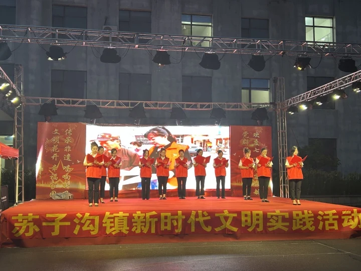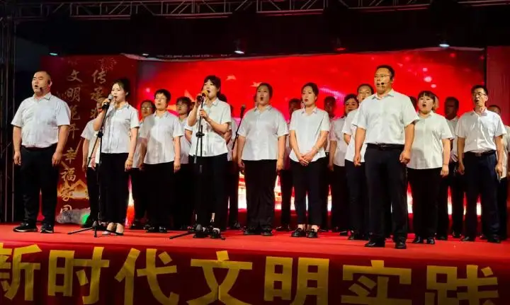 三句半节目《抵制高额彩礼 共筑文明新风》等,用接地气的方言,将移风易俗理念送进百姓心坎;徐家堡村广场舞队的《绿旋风》,舞出村民积极向上的精气神儿。各村村干部朗诵《阳光下的誓言》致敬志愿精神,志愿者们带来《万疆》等经典歌曲,唱响对祖国的深情。最后,全场大合唱《歌唱祖国》将气氛推向高潮,红旗舞动、歌声嘹亮,尽显爱国情怀。