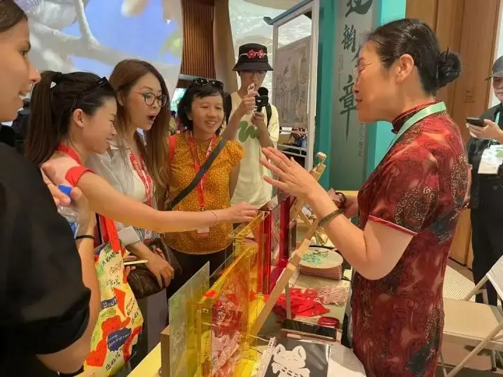 同时,辽宁省博物馆馆藏的“青瓷飞鱼纹水盂”“石榴樽”等文物,通过岫岩满族剪纸技艺被赋予了鲜活的民间艺术造型。这种传统文物与剪纸艺术的创新融合之作,同样赢得了现场观众的喜爱与好评。旅居日本的辽宁籍观众高晶在看到嬷嬷人剪纸作品时格外动容,她表示,能在国外看到家乡的文化被世界珍视和传承,她感到非常的骄傲和自豪。(来源:千山晚报)