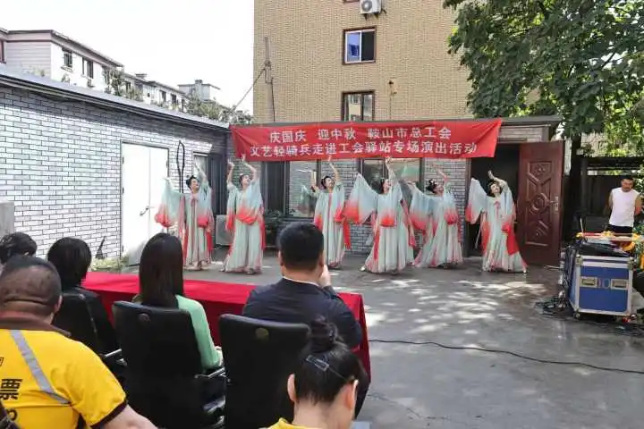 9月24日,由市总工会主办的庆中秋、迎国庆“中国梦·劳动美——凝心铸魂跟党走 团结奋斗新征程”文艺轻骑兵专场演出走进鞍山大牛工会驿站,来自各级工会的50余名新就业形态劳动者代表和工会干部观看演出。