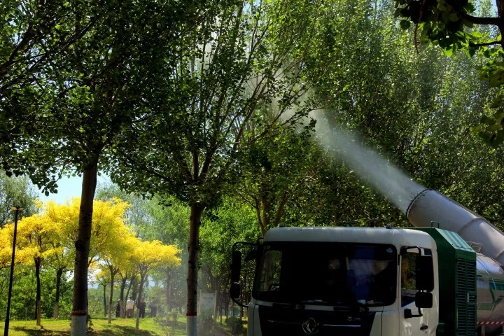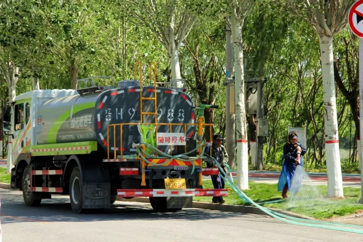 5月18日,千山湾七号桥北侧一片繁忙景象,工作人员正在对绿化带新铺草坪进行滚压、浇水等作业。同时,绿化工程车也对树木进行补水及防虫等工作,精心打理新景观,为市民创造更优美的休闲环境。(来源:鞍山日报)