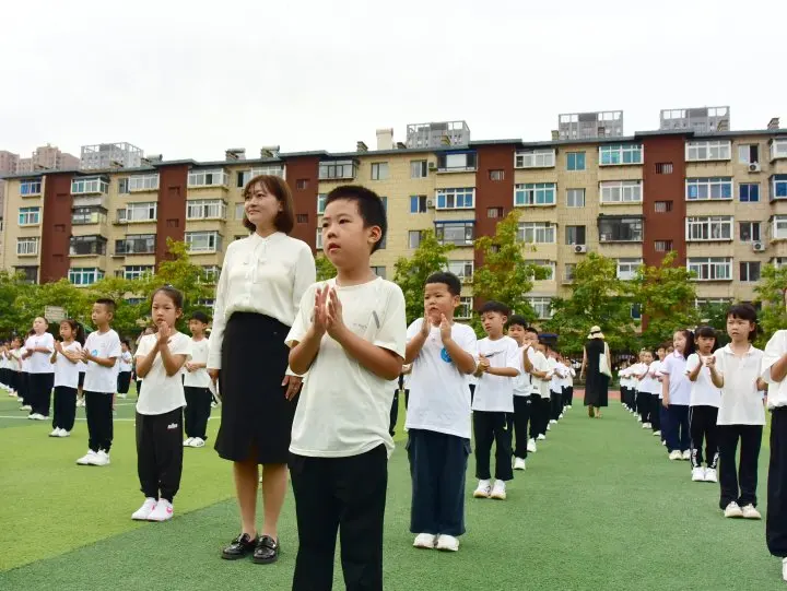 9月3日,鞍山市钢都小学新华街校区处处洋溢着蓬勃朝气,以“为每个人安装动力系统”为主题的开学典礼举行。在充满阳光与活力的操场上,一二年级全体师生精神饱满地迎接新学期。(来源:鞍山日报)