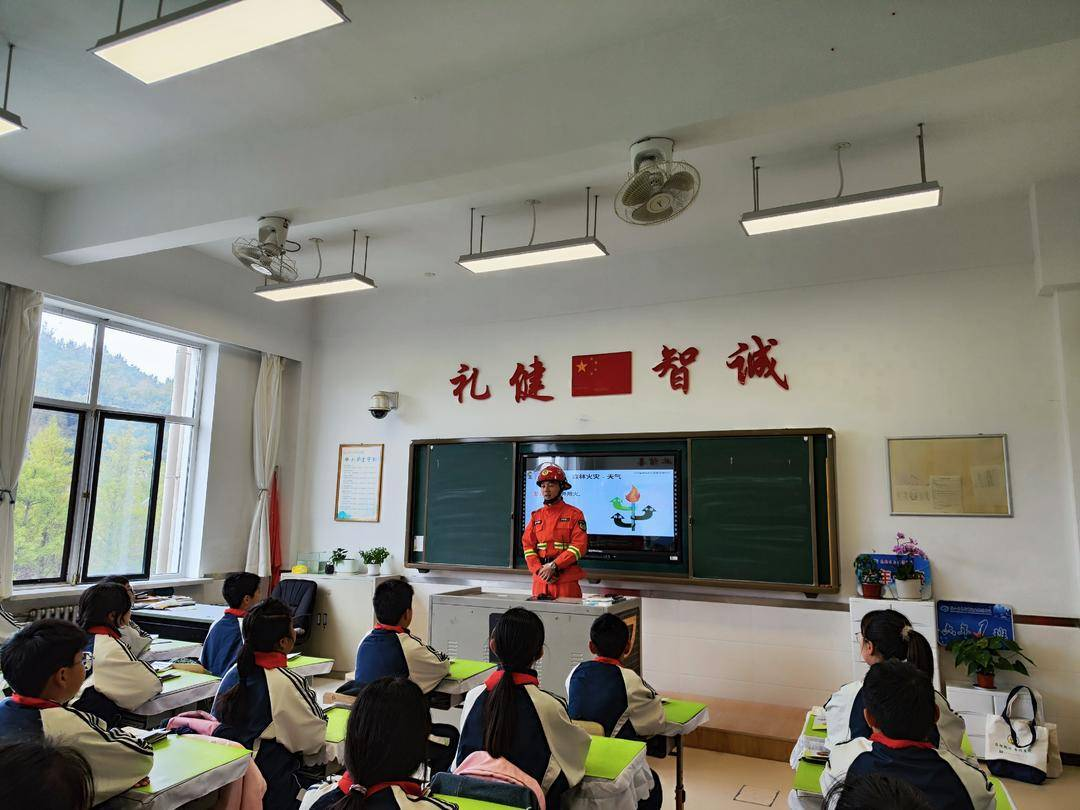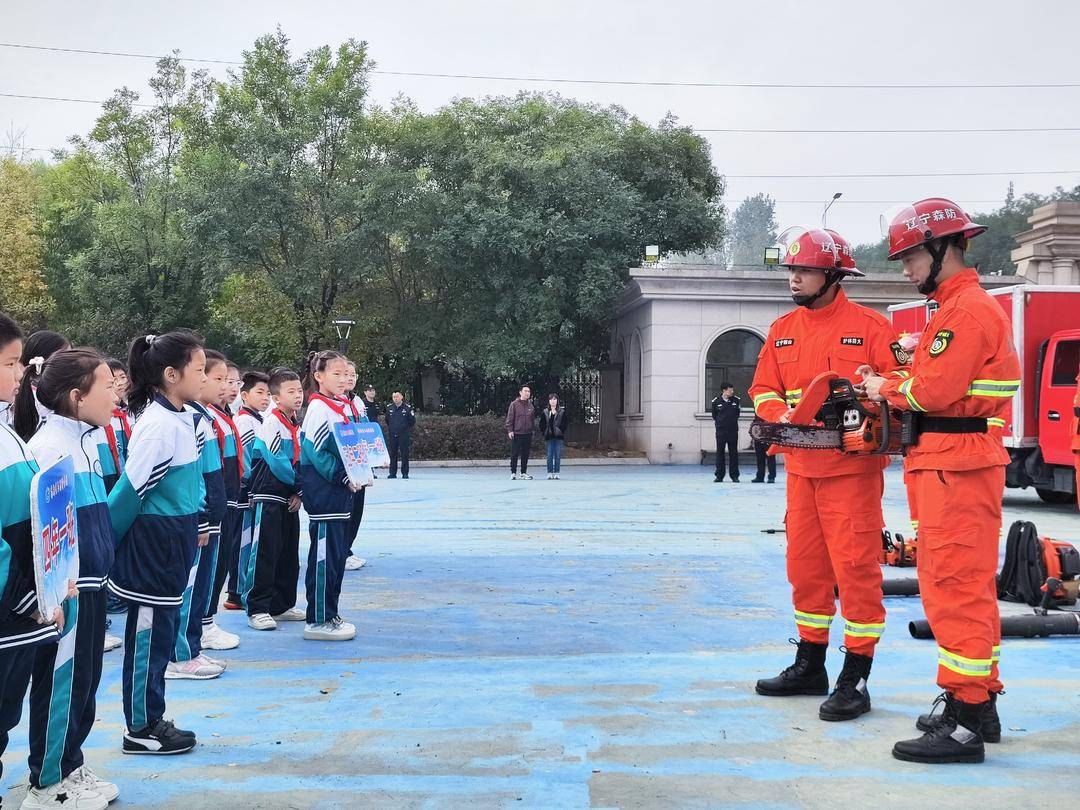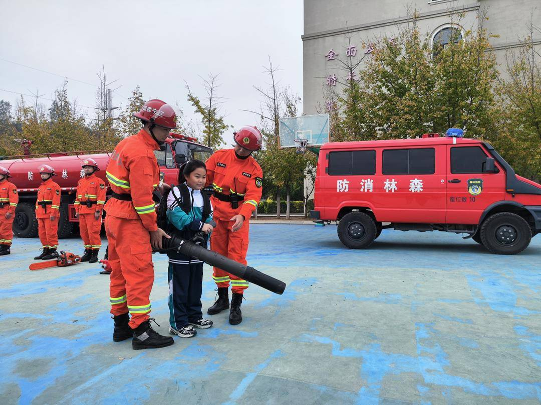 在鞍山市高新实验玉龙湾学校,防火宣传员为学生开设“防火小课堂”,森林消防员化身课堂讲师,介绍各类森林消防装备,并指导学生亲身体验。(来源:辽望·辽宁日报)