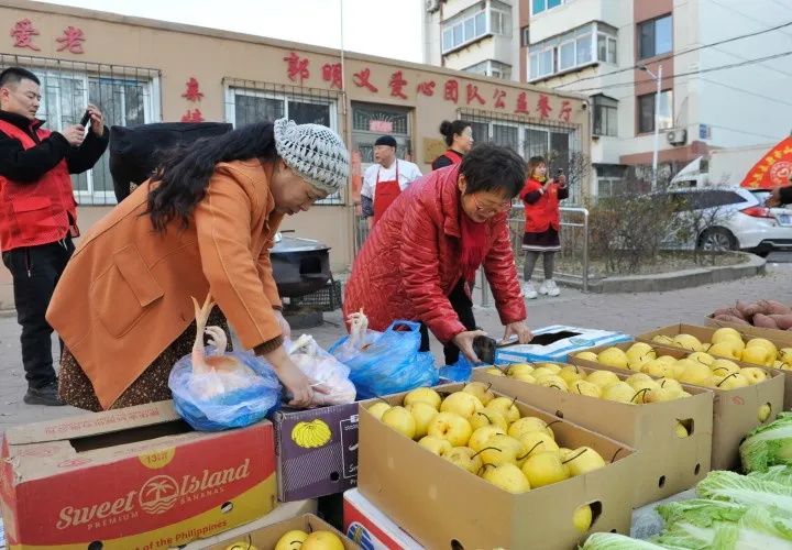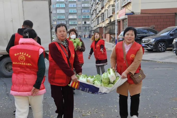11月22日,市慈善总会海城正义之心团队志愿者们驱车来到位于立山区友好街道永安社区的“郭明义爱心团队公益餐厅”,开展爱心捐赠活动。志愿者们为老人送去了大白菜、雪花梨、苹果、地瓜、溜达鸡等生活物资,传递冬日温情。(来源:鞍山日报)