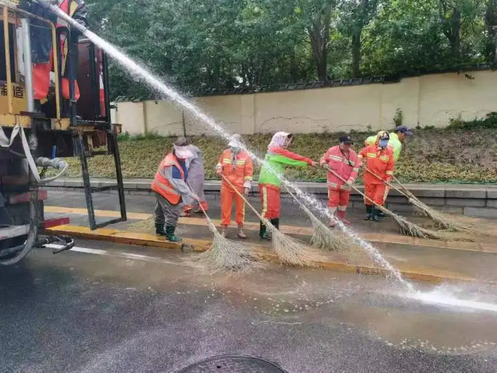 背街小巷道路狭窄曲折,传统大型环卫设备难以施展,这成为街巷水洗作业的“瓶颈”。为此,市城市管理局启发各城区、开发区因地制宜,创新推出“轻型设备+人工”协同作业新模式。小型高压冲洗车、便携式清扫设备等轻型装备灵活穿梭于狭窄巷道,完成路面基础冲洗;环卫工人则手持清洁工具,对墙角旮旯、排水缝隙等机械作业盲区进行“绣花式”再清理,人机深度配合,确保狭窄街巷的每寸路面都得到细致清洁。