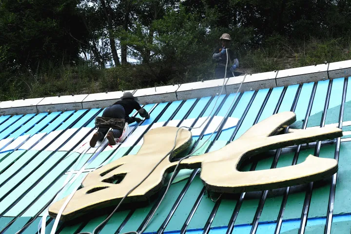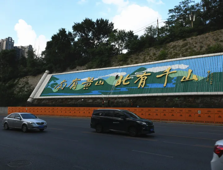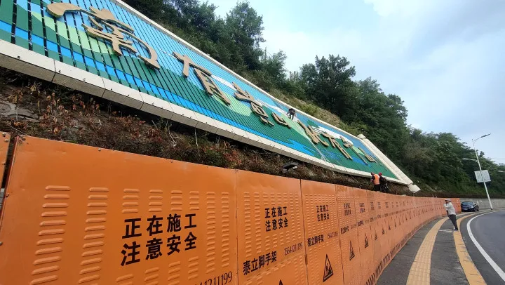 7月19日,鞍山市千山中路“南有黄山 北有千山”墙面广告牌灯组改造工程正在进行。此次改造通过优化灯光设计,将呈现白昼清朗、入夜璀璨的视觉效果。改造后,经典标语在光影中更显活力,助力展现千山文旅风采。(来源:鞍山日报)