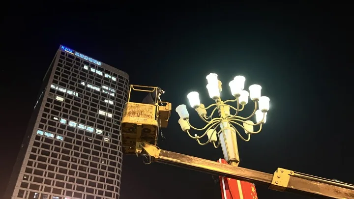 11月24日晚,维修人员对铁东区胜利广场周边的路灯进行安全检修。此次维修将对全市范围内的所有路灯进行检修,为市民打造更加明亮的出行环境。(来源:鞍山日报)
